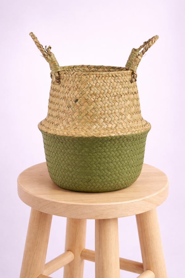 Gevlochten zeegras mand olijfgroen/bruin – 22 cm