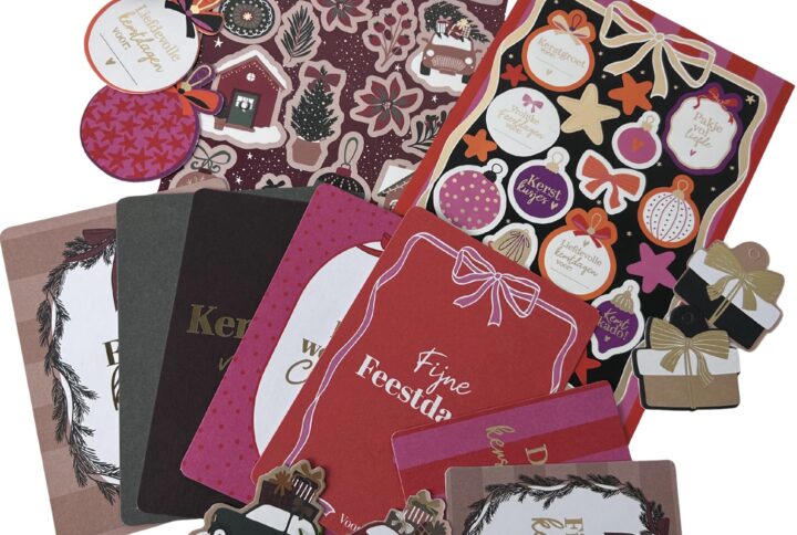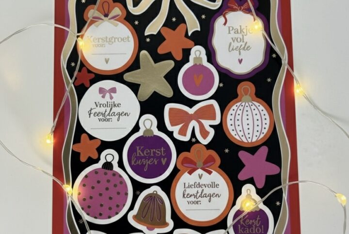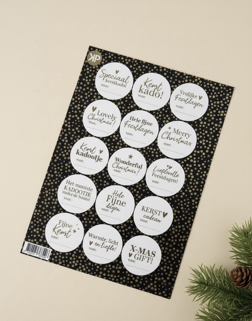 A5 Stickervel met diverse stickers met goudfolie. Super leuk om jouw kerstcadeau helemaal af te maken!