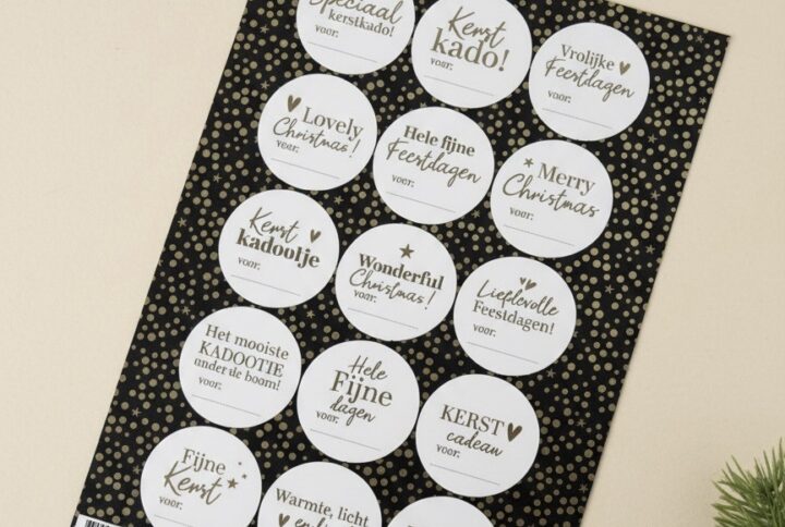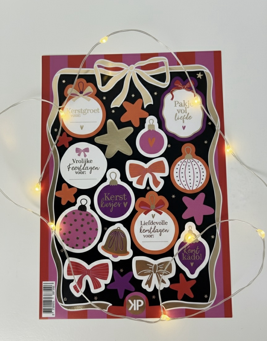 A5 Stickervel met diverse stickers met goudfolie. Super leuk om jouw kerstcadeau helemaal af te maken!