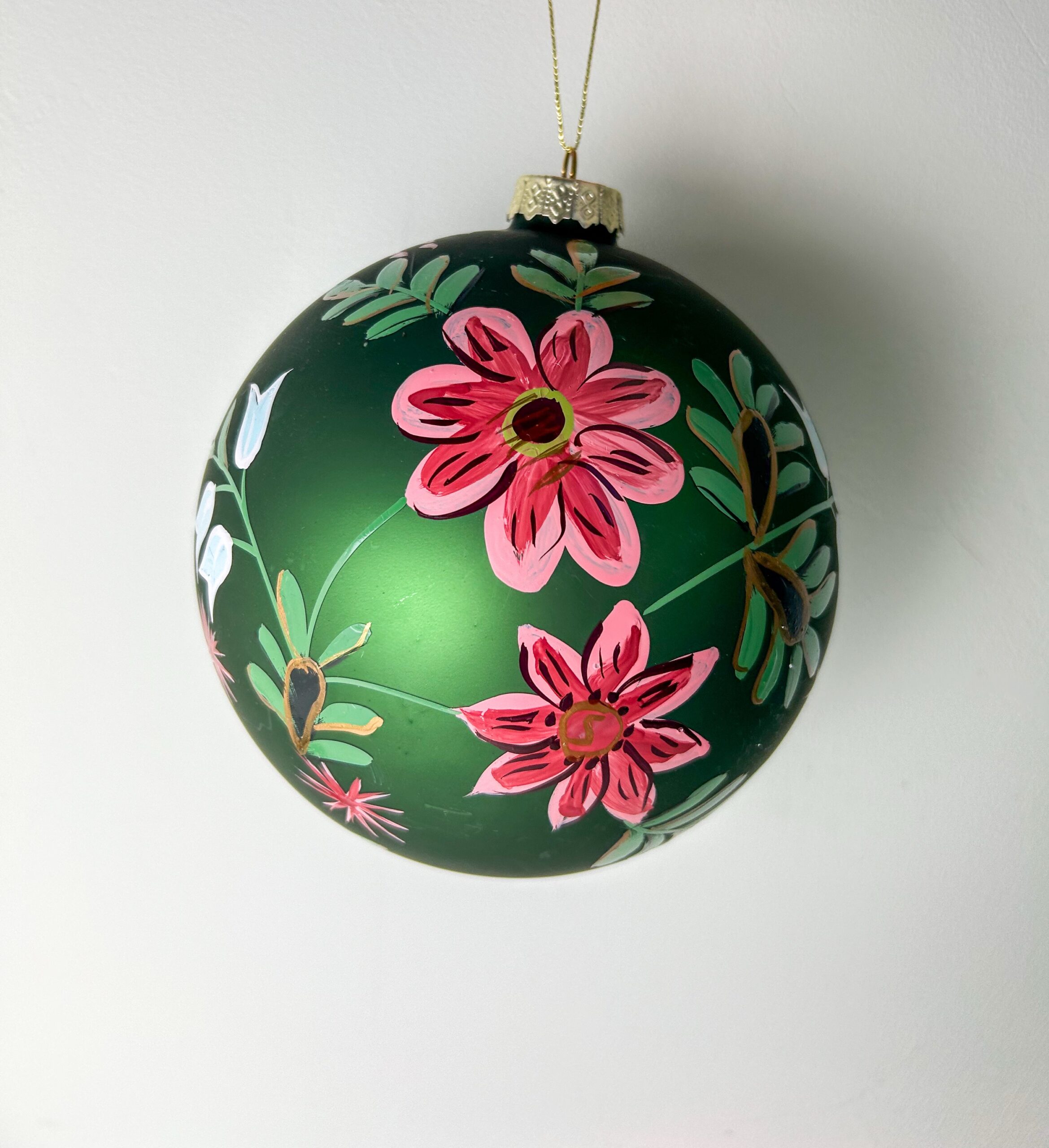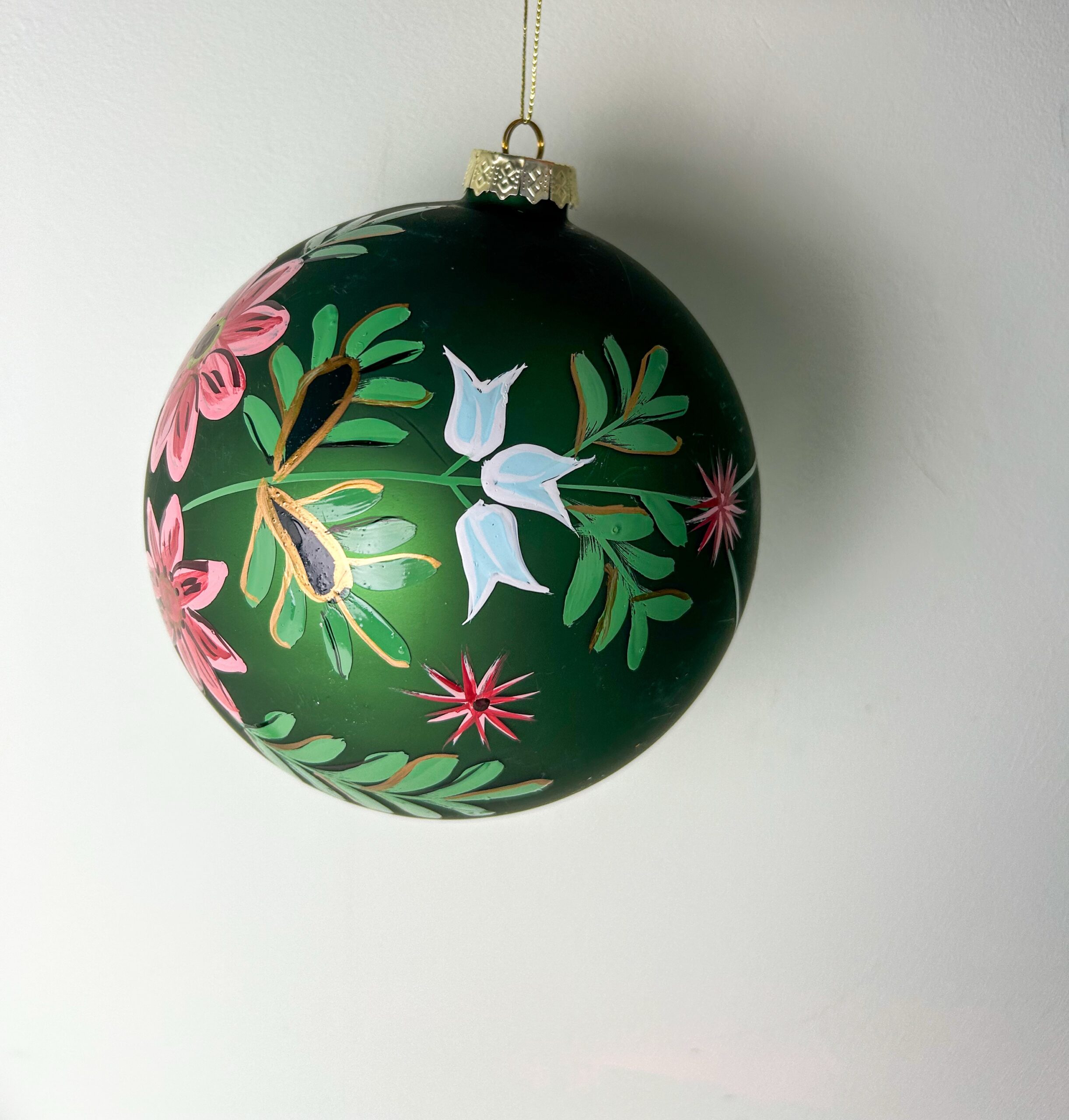 Een super grote kerstbal met een prachtige beschildering erop. De kerstbal is 15cm doorsnee.