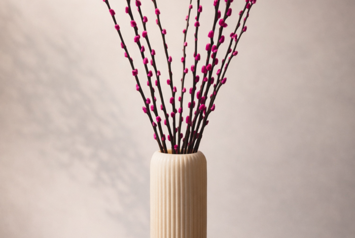 Bosje met vrolijk lila gekleurde katjes. Lengte: 70cm. 10 stelen in een bos.